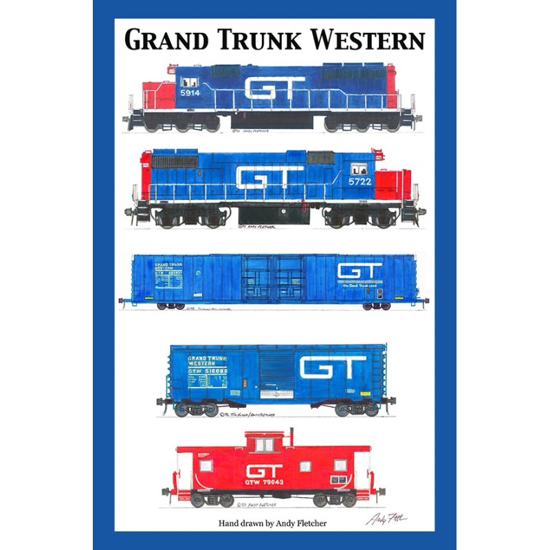 Grand Trunk Western Freight Train 12"x18" matted poster Andy Fletcher signed