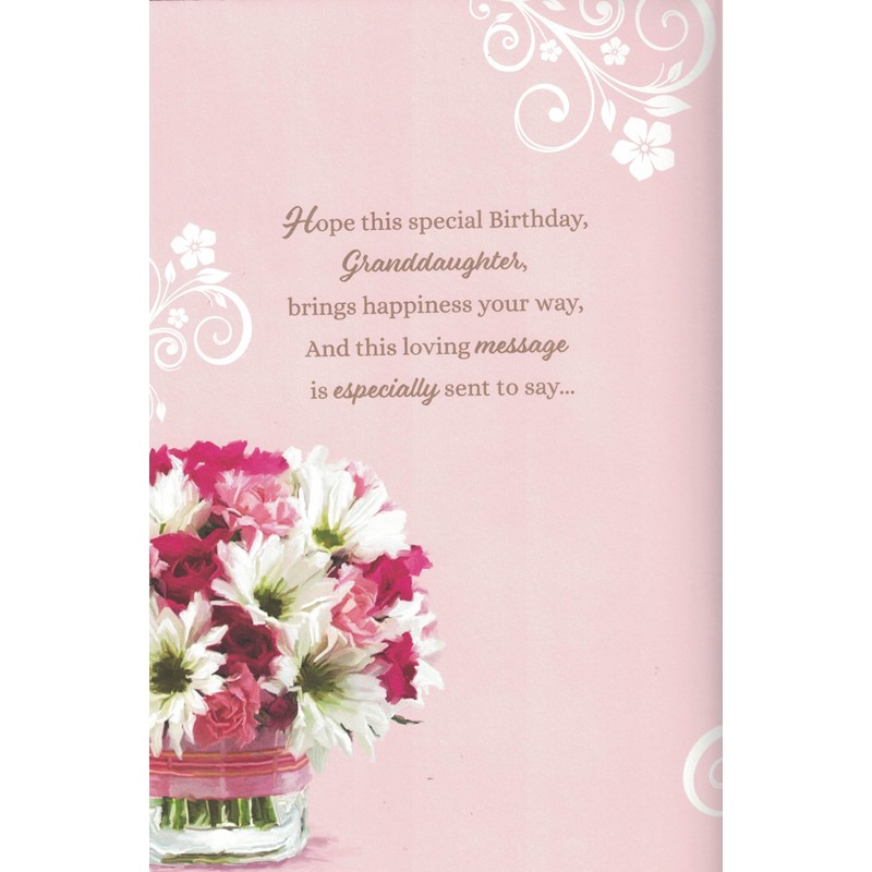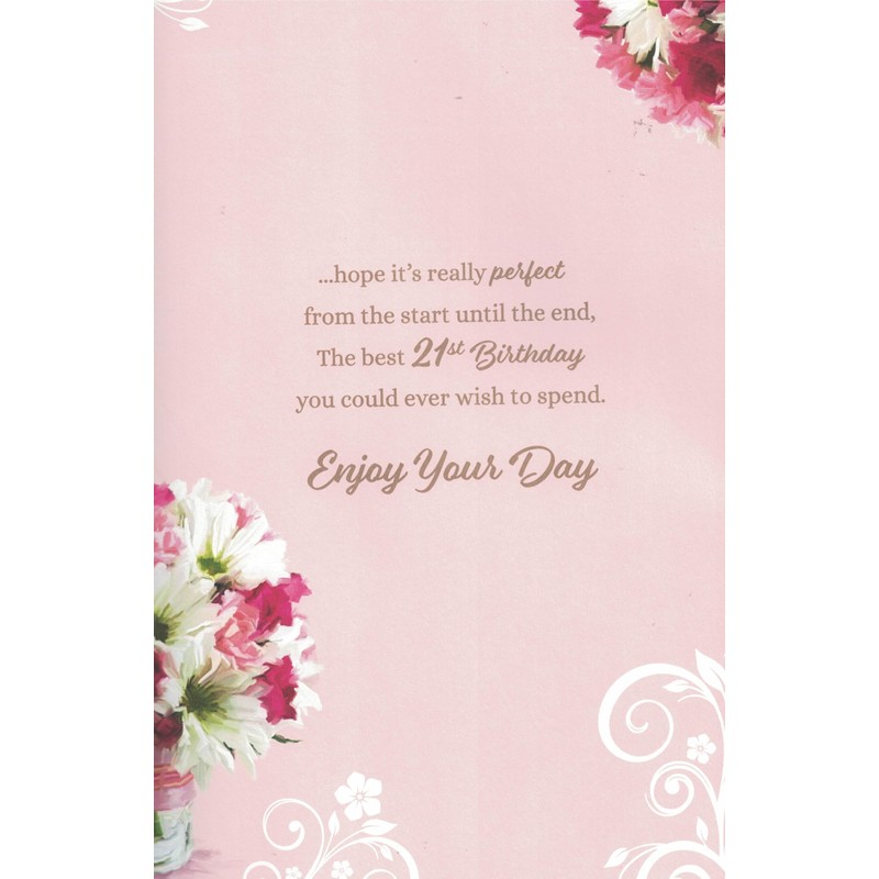 Granddaughter 21st Birthday Card, Large Format with 8-Page Insert, Pink Flora...