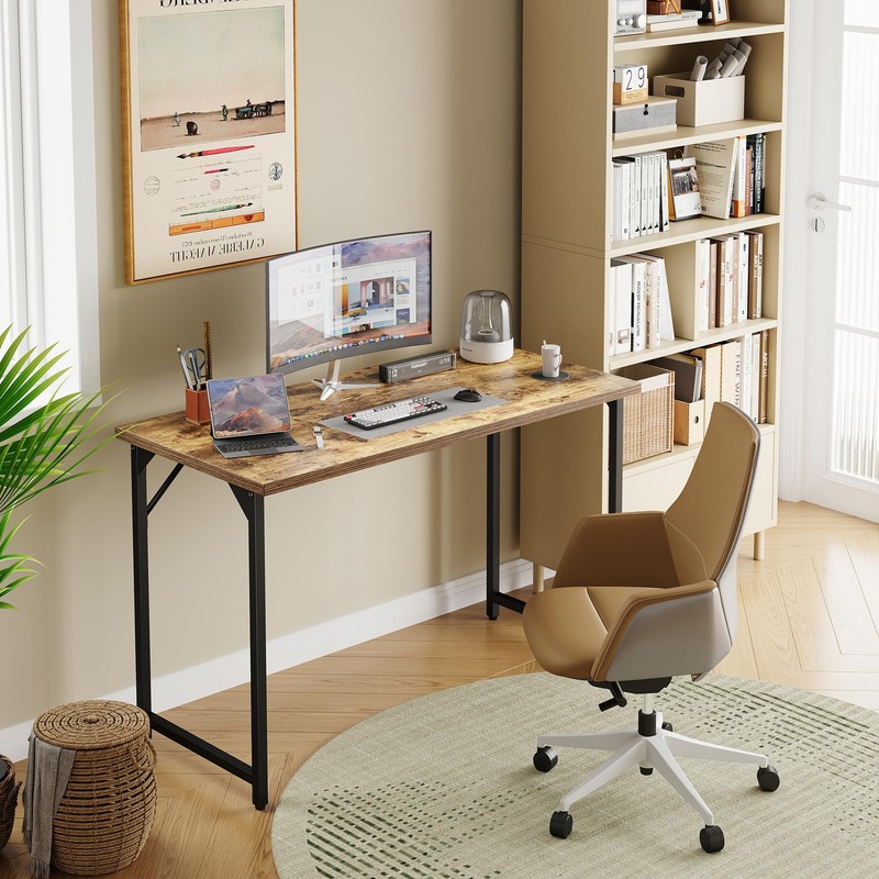 Grandder 40 inch Computer Desk, Small Home Office Desk Study Writing Kid Table, Simple PC Work Desk, Adjustable Feet, Rustic Brown
