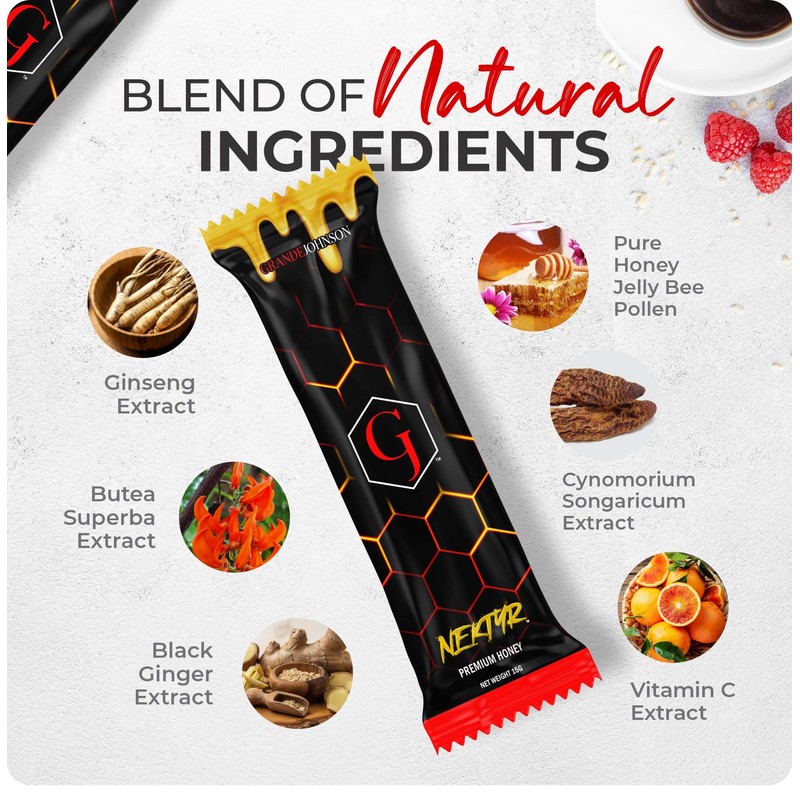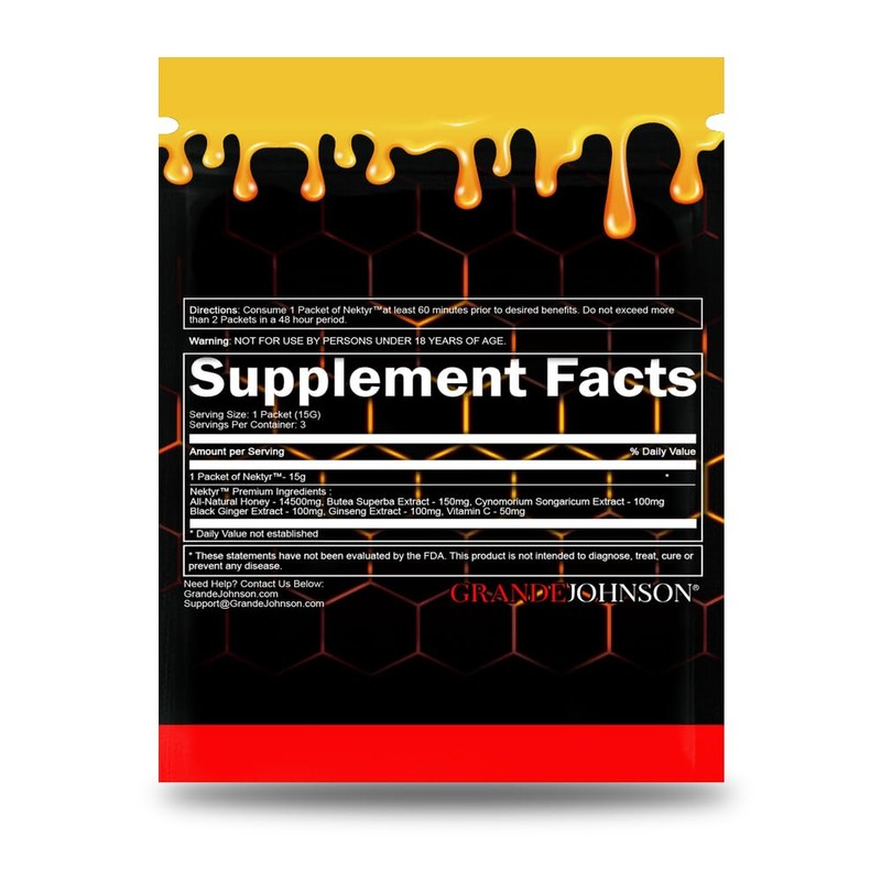 Grande Johnson - Nektyr - Organic Premium Natural Pure Honey with Jelly Bee Pollen - Pack of 3