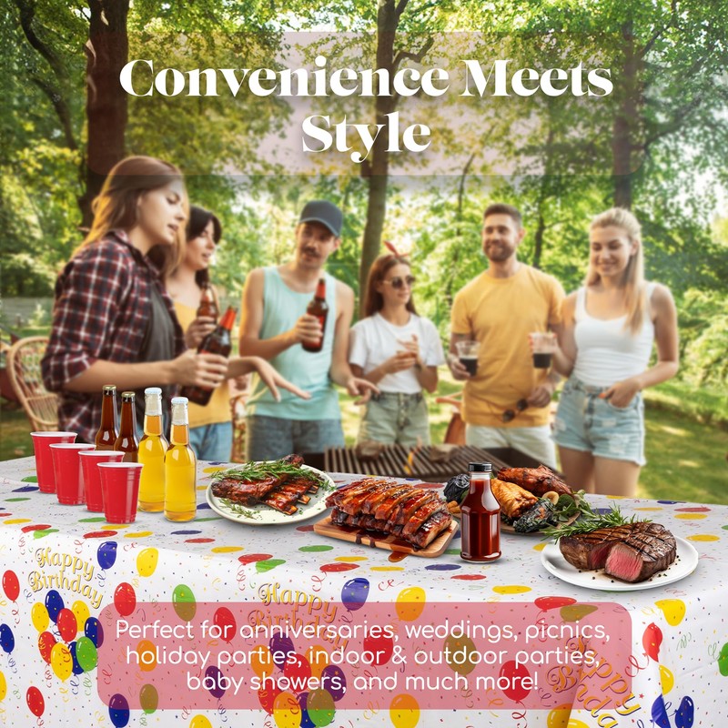Grandipity Happy Birthday 12 Pack Premium Disposable Plastic Picnic Tablecloth 54 Inch x 108 Inch. Decorative Rectangle Table Cover