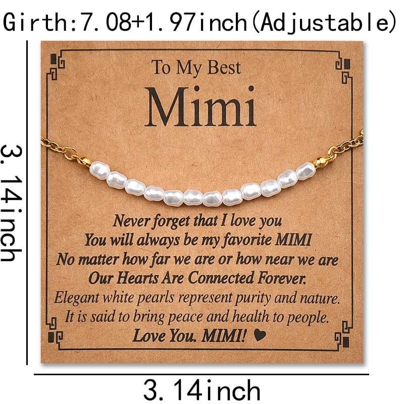 The best grandma bracelets for women grandmother is best grandma gifts from grandkids, the to my grandma bracelet comes with a wish card, " To My Best MimiNever forget that I love you, You will always be my favorite MIMI, No matter how far we are or how near we are, Our Hearts Are Connected Forever. Elegant white pearls represent purity and nature. It is said to bring peace and health to people. Love You.MIMI! " , tell your love through the love words, best mother's day gifts for grandma from grandkids, best grandma christmas birthday gift ideas, best mimi long distance relationship gift for women grandma