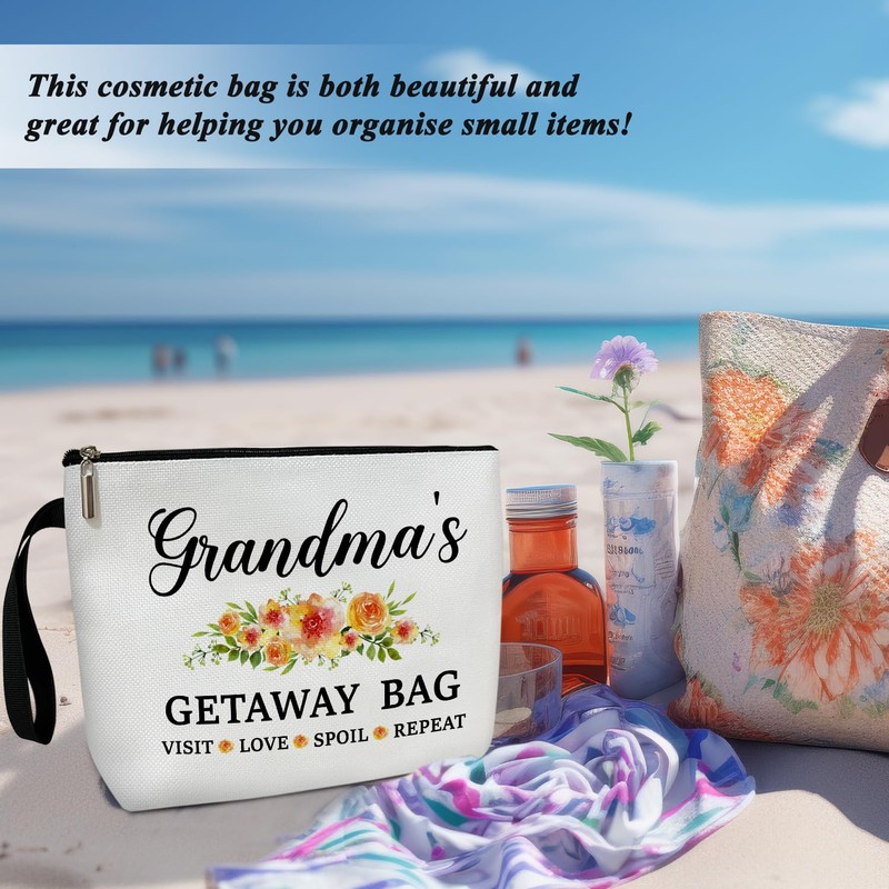 Grandma Gifts Grandma Bag, Floral Makeup Bag, Birthday Gifts for Grandma Nana, First Time Grandma Gifts, Mimi Bag Gifts For Mimi, Cosmetic Bag Zipper Travel Organizer Toiletry Pouch -050