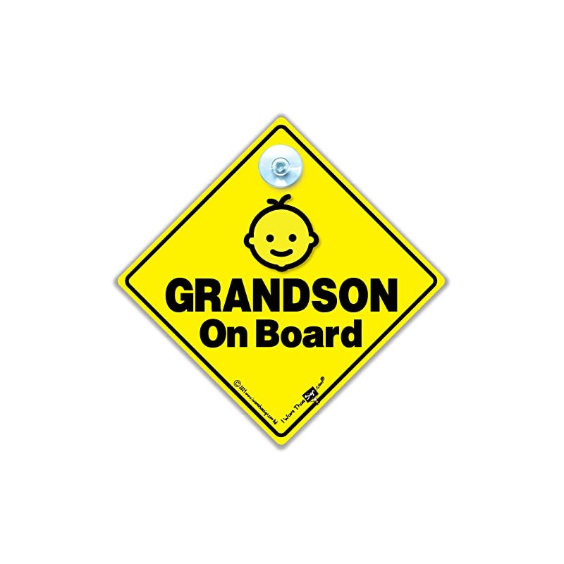 Grandson On Board Sign, Baby On Board Sign, Grandchild On Board Car Window Sign, High Visibility Advisory Car Sign Designed to Let Other Road Users a Child is in The Car, 14 cm x 14cm x 2cm