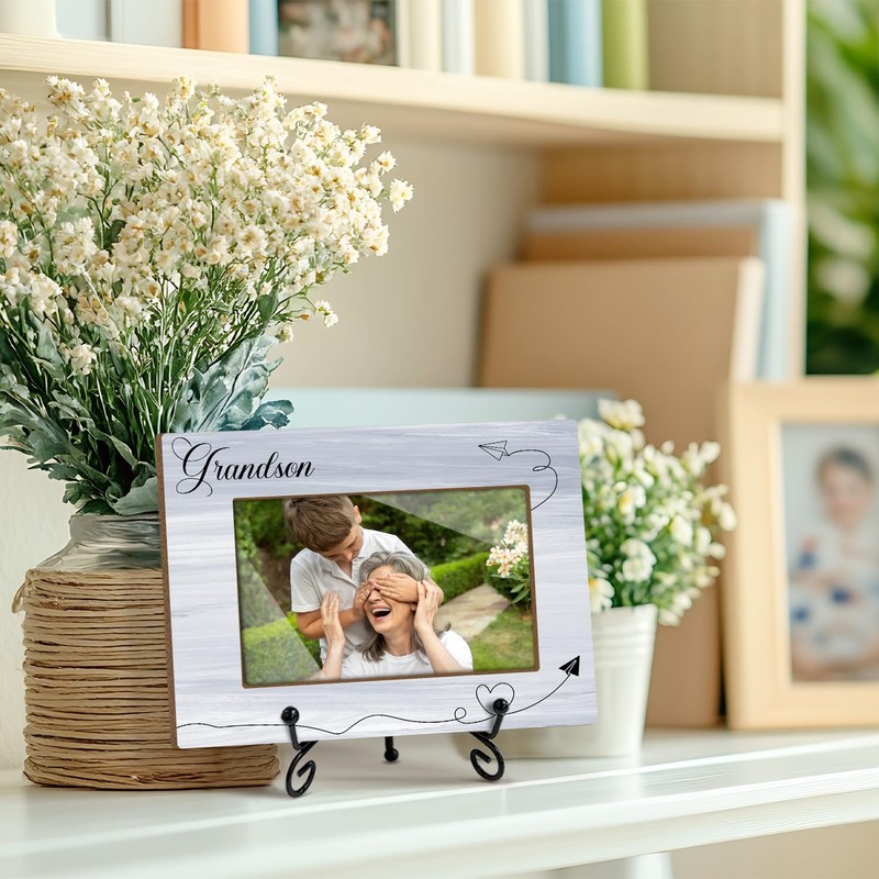 Grandson Picture Frame, 4x6 Picture Frame Wood, Grandma Grandpa Gifts from Grandson Grandchild, Grandparents Gifts, Picture Frame Gifts For Birthday Thanksgiving, Desk Decor Keepsake Photo Frame - 61