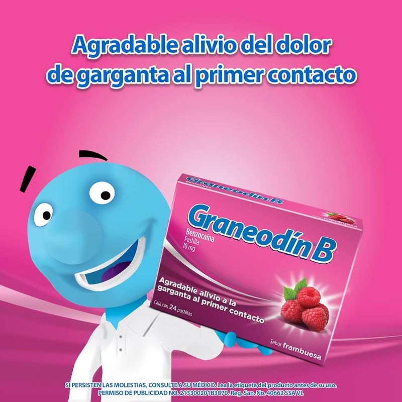 Graneodín B, para dolor de garganta, sabor frambuesa