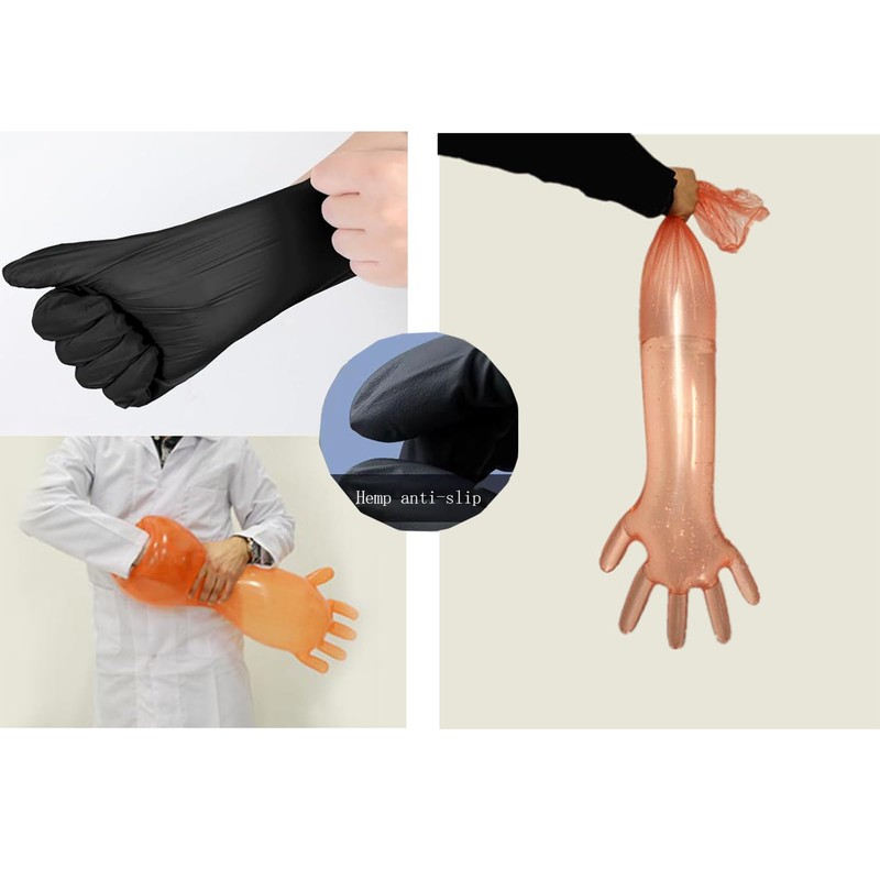 - EASY TO USE: These field dressing gloves are comfortable and easy to put on and take off. First, put on the long plastic gloves and secure them on the upper arm with rubber bands. Then, wear the nitrile gloves over them. The combination of long and short gloves with rubber bands allows for quick application, ensuring your clothes stay clean. NOTE: Please remember to dispose of the used gloves properly after each use to maintain hygiene and safety standards.