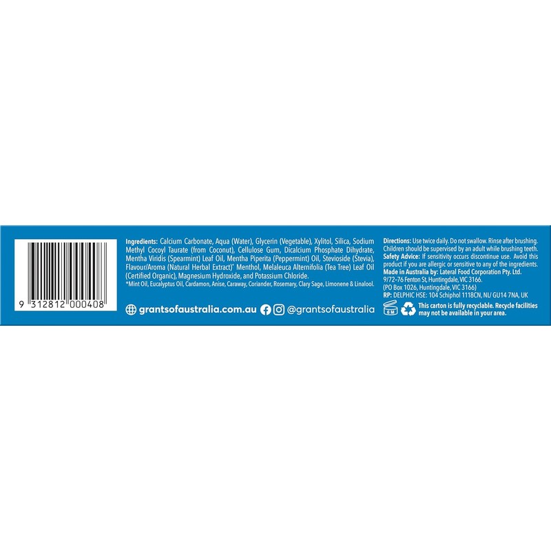 Fresh Mint Flavor: Grants Fresh Mint Toothpaste offers a refreshing, minty burst with the added benefits of tea tree oil to help reduce bacteria and inflammation from gingivitis.