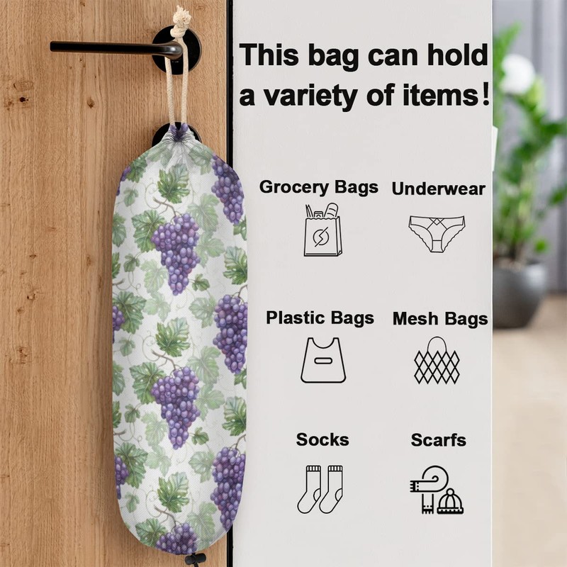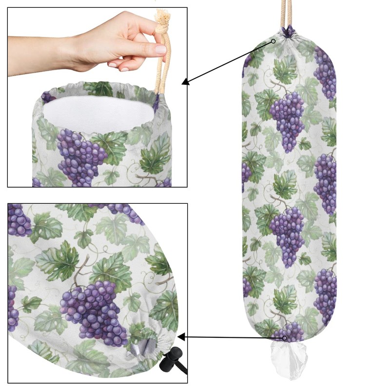 Grape Plastic Bag Holder Grocery Bag Holder with Adjustment Drawstring Reusable Wall Mount Trash Bag Organizer Dispenser for Kitchen Home Travel,22 x 9 in