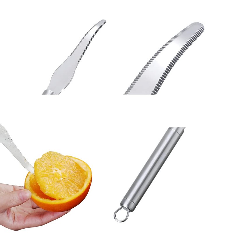 - 4.Complete Fruit Pulp: Curved serrated edge allows easily loosen grapefruit sections and separates fruit pulp from membrane without squirting juice. Mess Less.