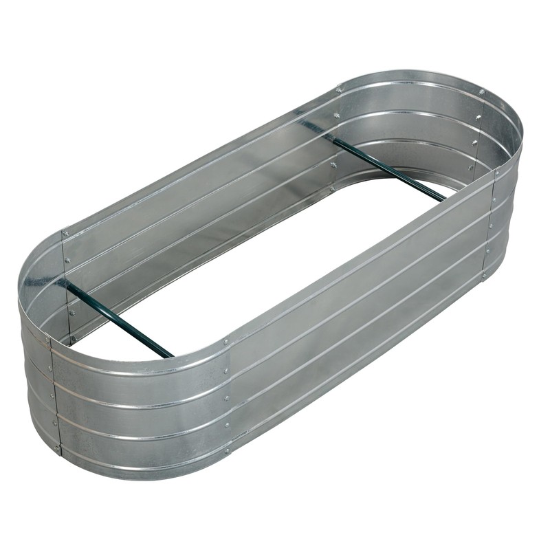 Grapevine Galvanized Steel Raised Garden Bed, Oval, 49IN, Silver