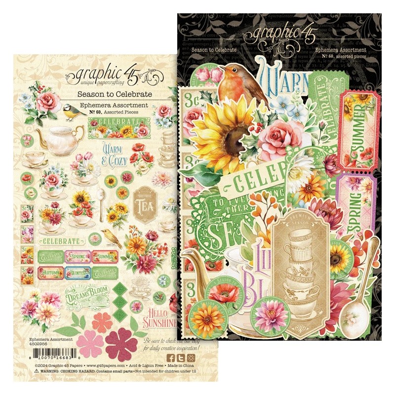 Graphic 45 SEASON TO CELEBRATE 60pc Die Cut Ephemera Assortment Set Scrapbook