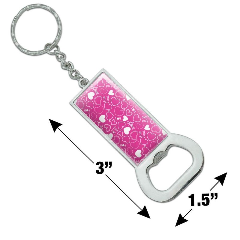 GRAPHICS & MORE Cute Hearts Love Pattern on Pink Keychain Rectangle Chrome Plated Metal Bottle Cap Opener