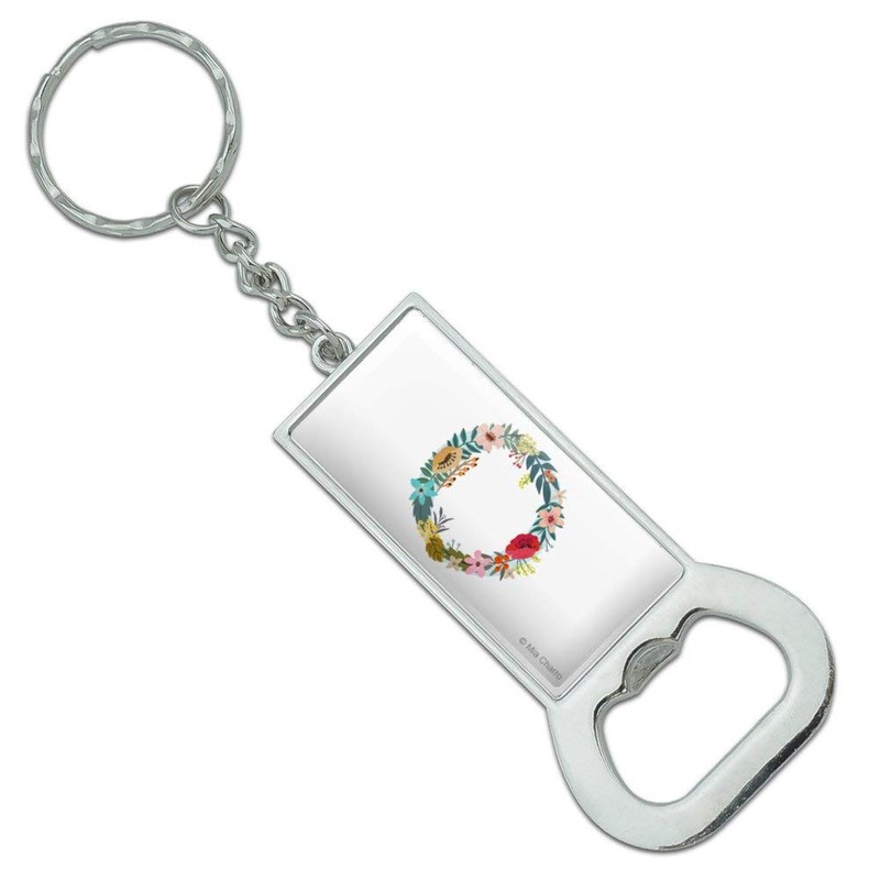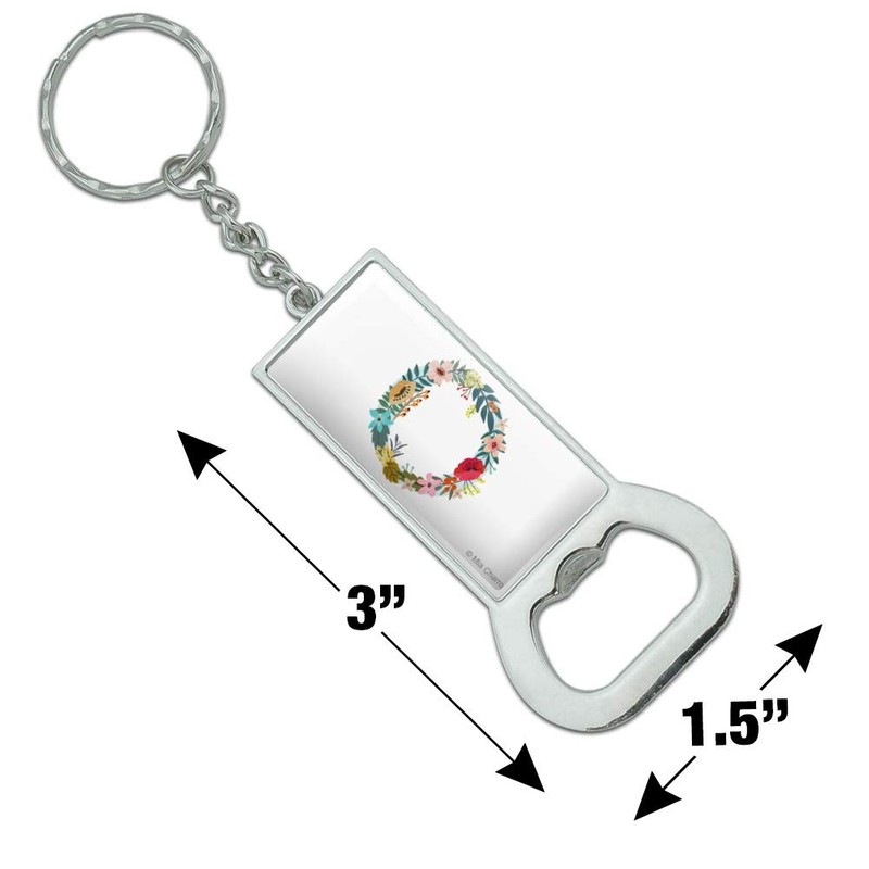 GRAPHICS & MORE Letter O Floral Monogram Initial Keychain Rectangle Chrome Plated Metal Bottle Cap Opener