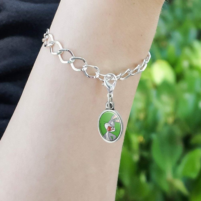 GRAPHICS & MORE Looney Tunes Bugs Bunny Antiqued Bracelet Pendant Zipper Pull Oval Charm with Lobster Clasp