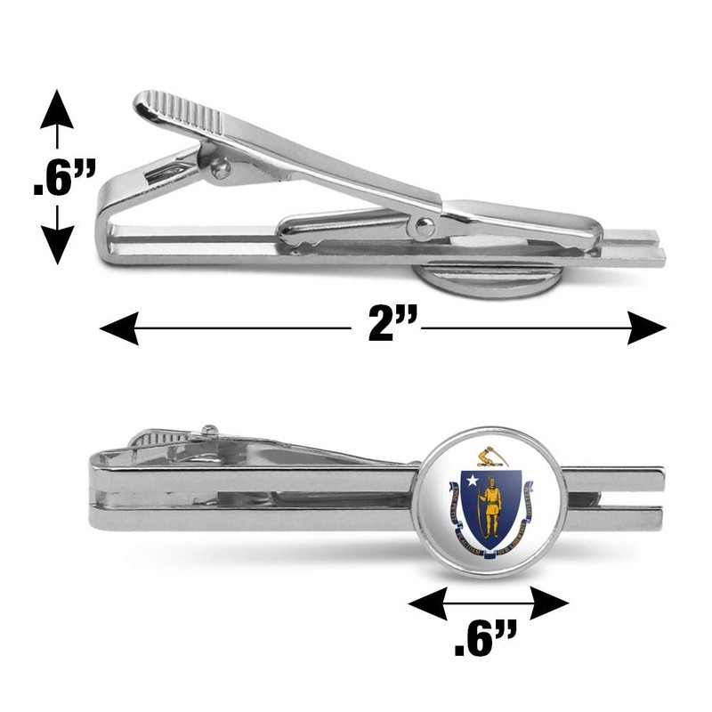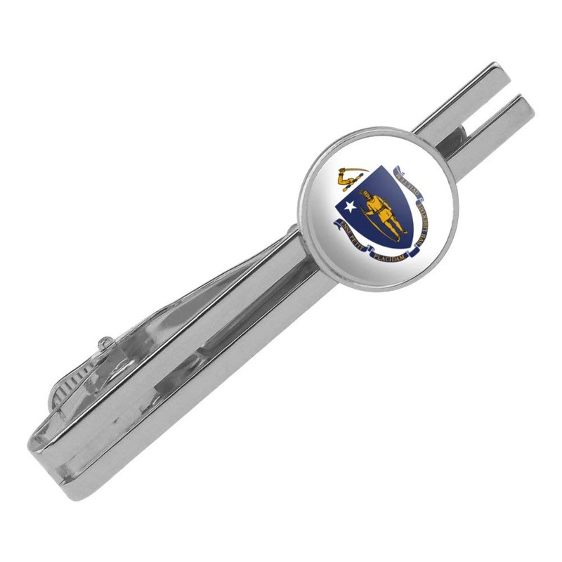 GRAPHICS & MORE Massachusetts State Flag Round Tie Bar Clip Clasp Tack Silver Color Plated