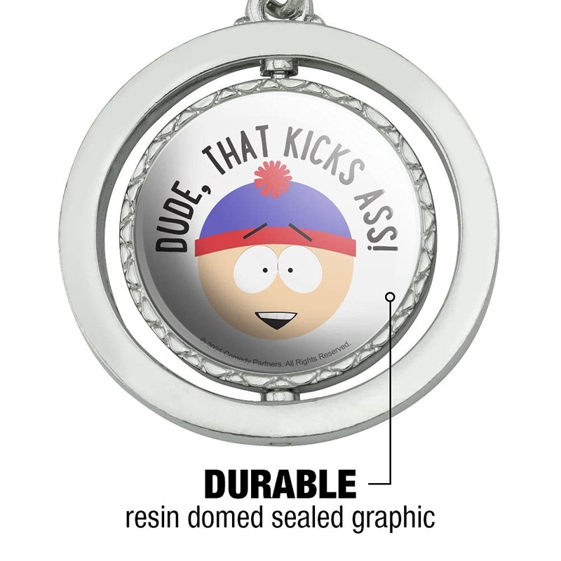 GRAPHICS & MORE South Park Stan That Kicks A** Keychain Spinning Round Chrome Plated Metal
