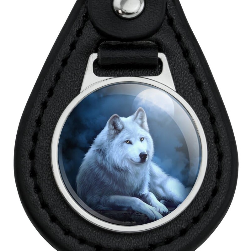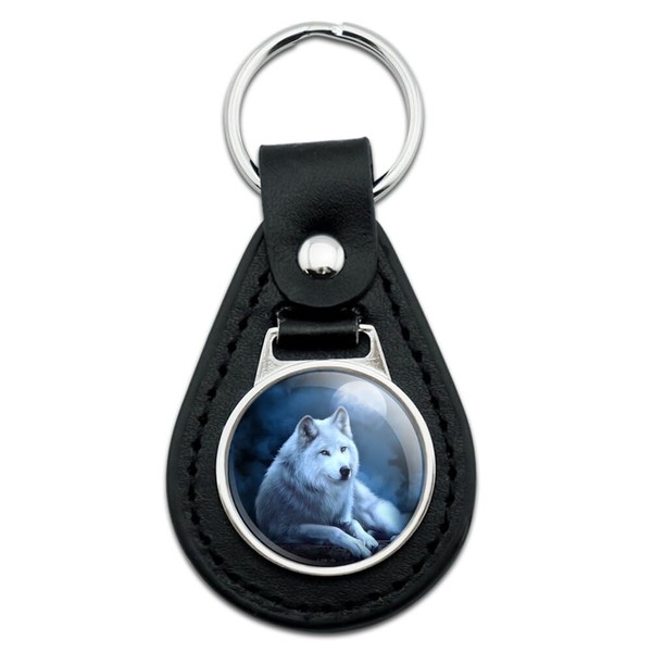 GRAPHICS & MORE White Wolf Moon Black Leather Keychain