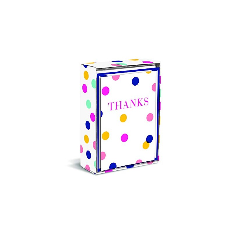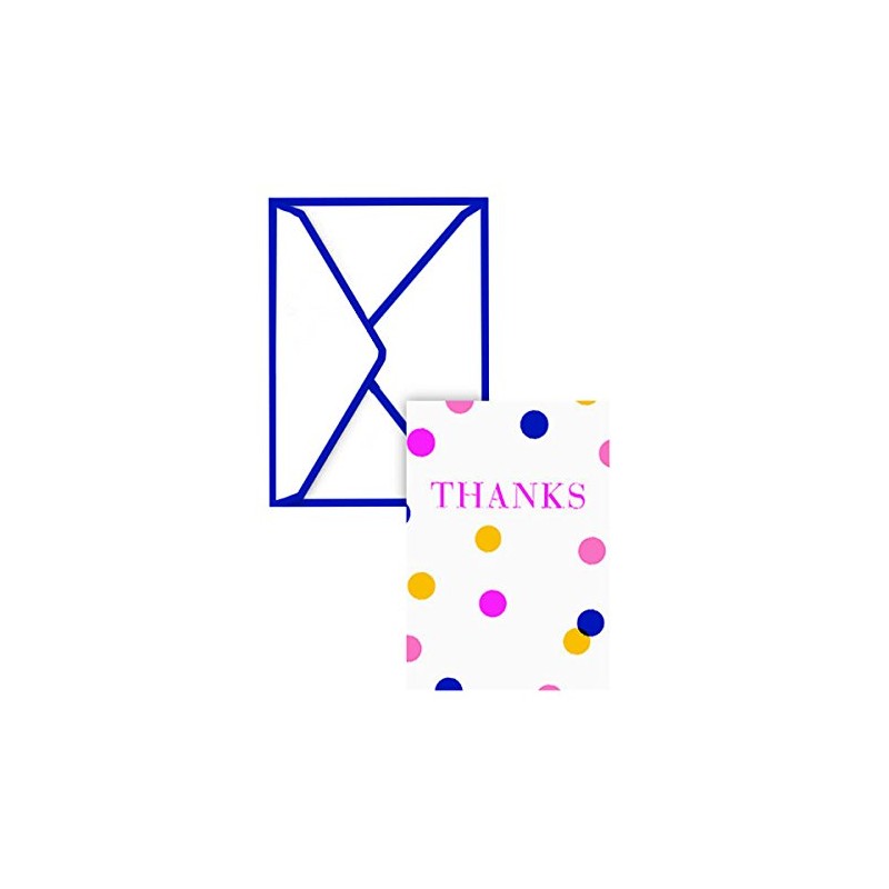 - Send a heartfelt note or handwritten thank you with these multi-colored polka-dotted "Thanks" cards. The coordinating envelopes use a simple, matching dark blue design so you can send out your message in style!