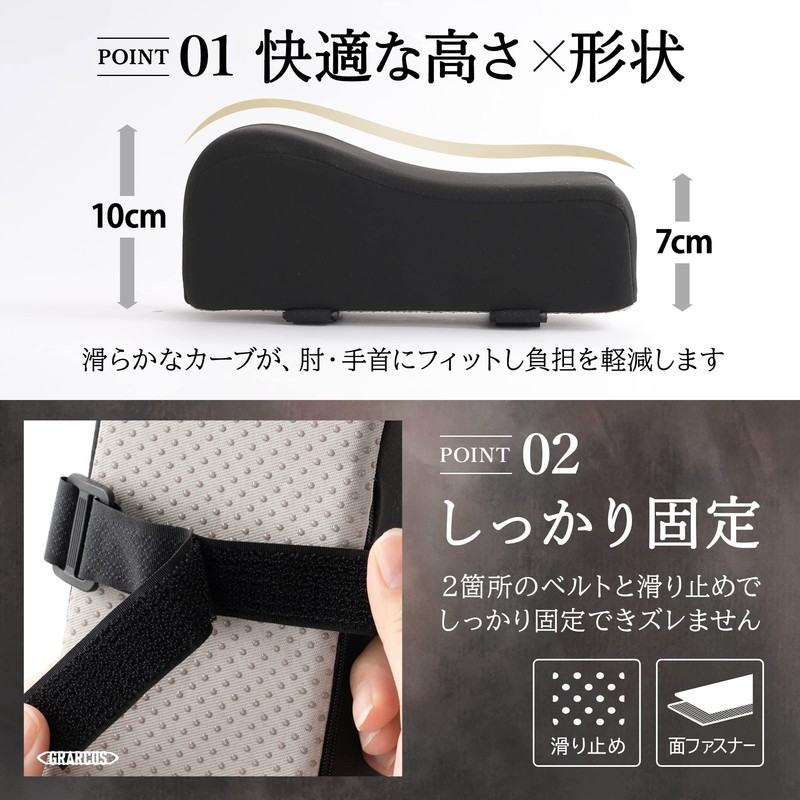 - (Great as a Gift) Elbow rest cushion that makes your daily desk work more comfortable, and makes a great gift. In addition to the main unit, it comes with an exclusive gift box and a Japanese instruction manual (English language not guaranteed) so it can be given as a gift. Choose the "GRARCUS" elbow cushion as a gift for yourself, your company, lover, or your loved ones