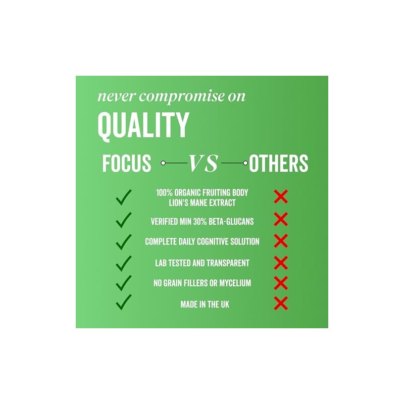 • HIGH POTENCY AND BACKED BY SCIENCE: Crafted from the highest quality Lion's Mane extract and combined with Ginseng, Omega-3, and vitamins B12 & D for a scientifically supported formula.