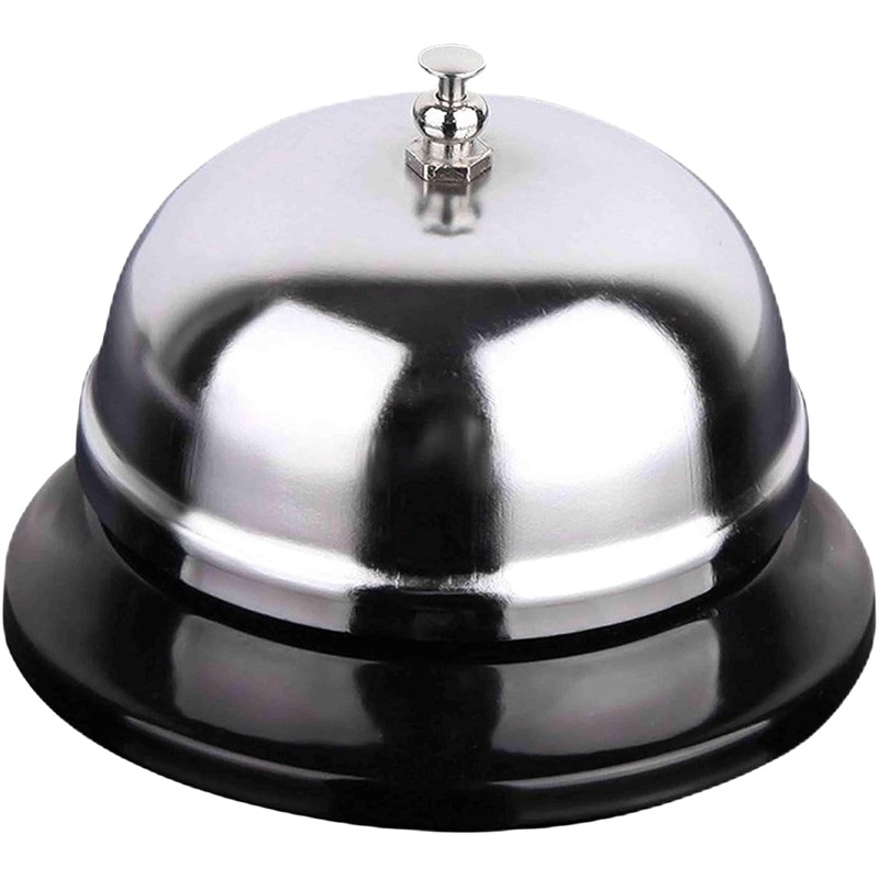- 黒の台座にシルバーのベルが付いた卓上ベルです。丈夫な構造でチーンという定番の心地よく響く大きな音を鳴らせます。