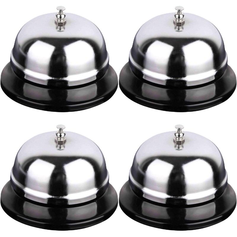 GRASSCALM 卓上ベル 呼び鈴 チャイム コールベル カウンターベル 飲食店受付ベル 店舗 会議用ベル ホテル チャイム パーティーグッズ イベント用品 呼びベル 受付用ベル 注文 ウェイトレス 先生 学校 授業 呼鈴 (シルバー4個)