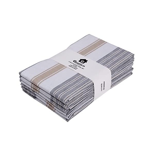 Gratico Premium Kitchen Towels 20x30 in Cotton Dish Towels for Kitchen, Grey/Biege Dish Cloths for Washing Dishes, Hand Towels for Kitchen, Tea Towels & Bar Mops for Kitchen - Set of 6