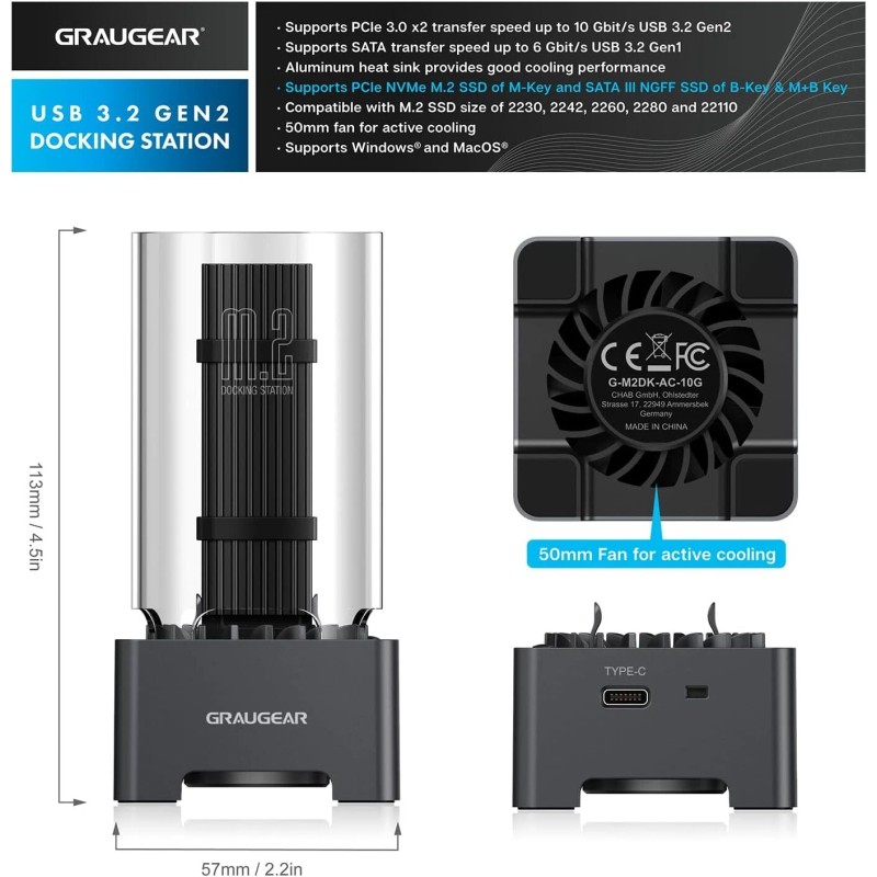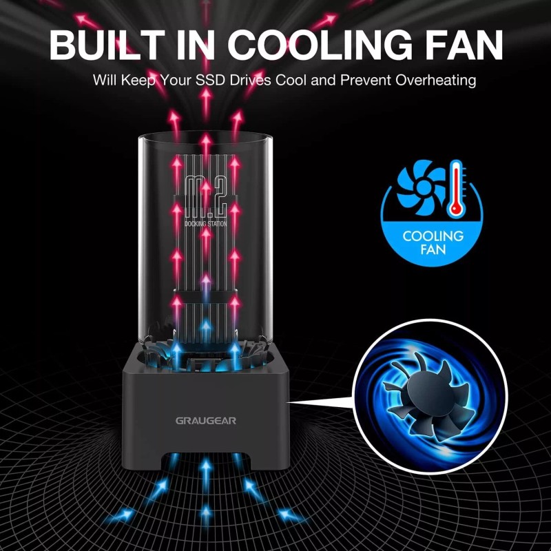 GRAUGEAR M2 Ssd Hard Drive Enclosure Usb 3.2 Gen2 10Gbps With Cooling Fan Compatible Nvme