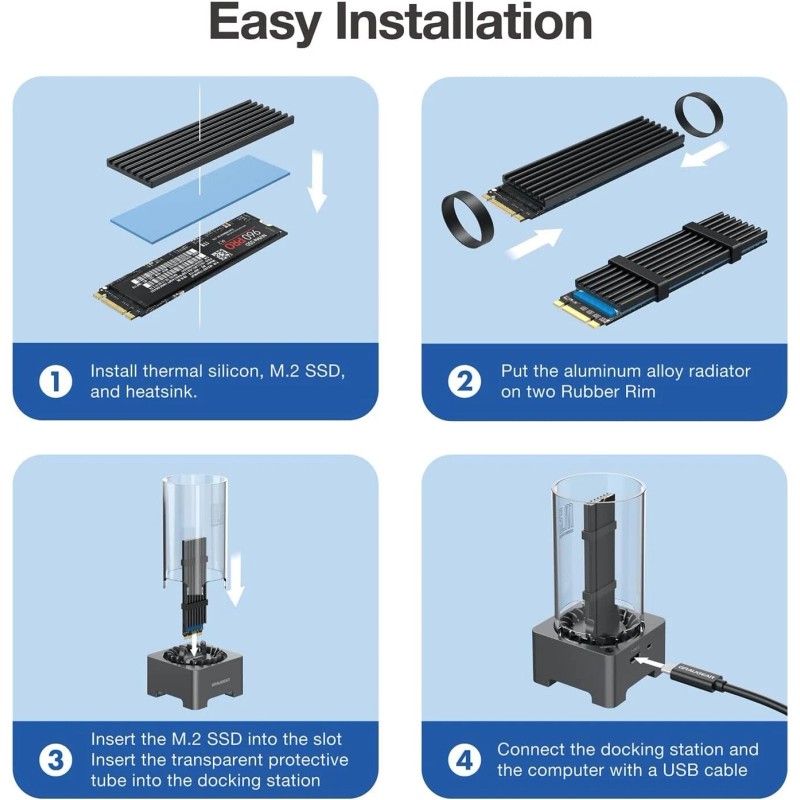 - Efficient Heat DissipationThe combination of active heat disspation with built-in 50 mm quiet cooling fan and passive heat disspation with aluminum heatsink helps dissipating the heat generated by M.2 SSD; Effectively protect your SSD from overheating and keep high transfer rate