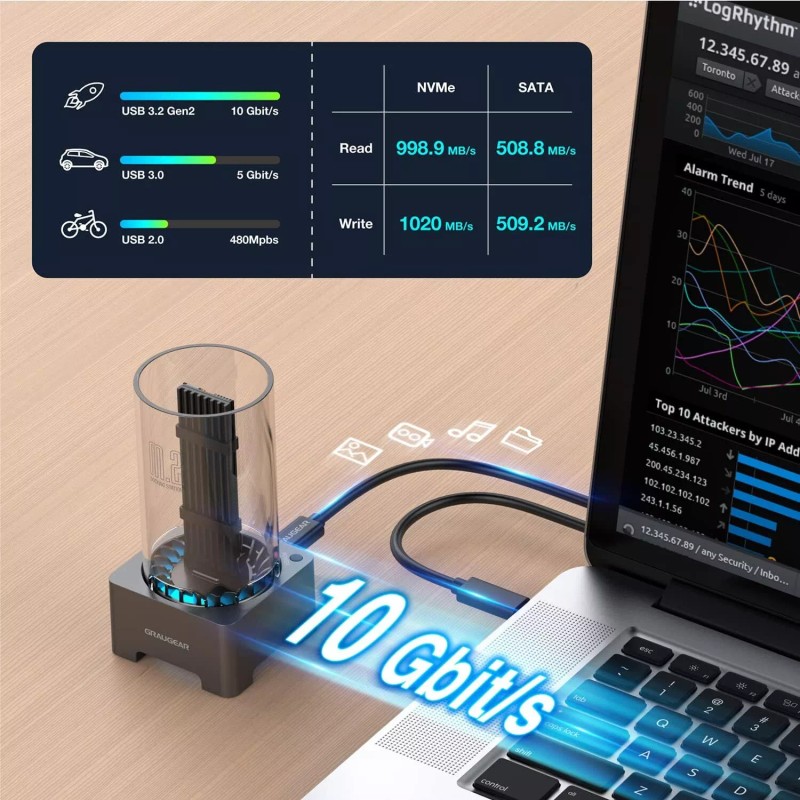 - Wide CompatibilityDocking station is suitable for M.2 SSD with its own heatsink. M.2 form factor compatible with both NVMe PCIe and NGFF SATA protocols in sizes 2230/2242/2260/2280/22110; The SSD reader is applicable to Windows, macOS, Linux and Android systems (Note: If M.2 SSD is the first use, please format it before using)
