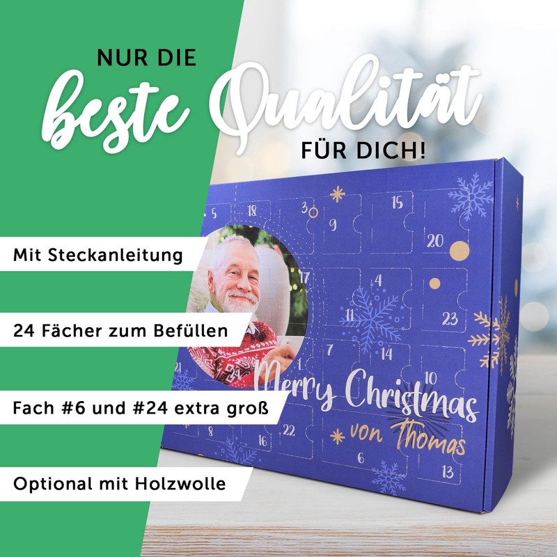 - Individually designed – make the advent calendar the highlight of the Christmas season: personalised with your own photo and name, this Christmas calendar offers the basis for a unique, lovingly designed Christmas companion for friends and family