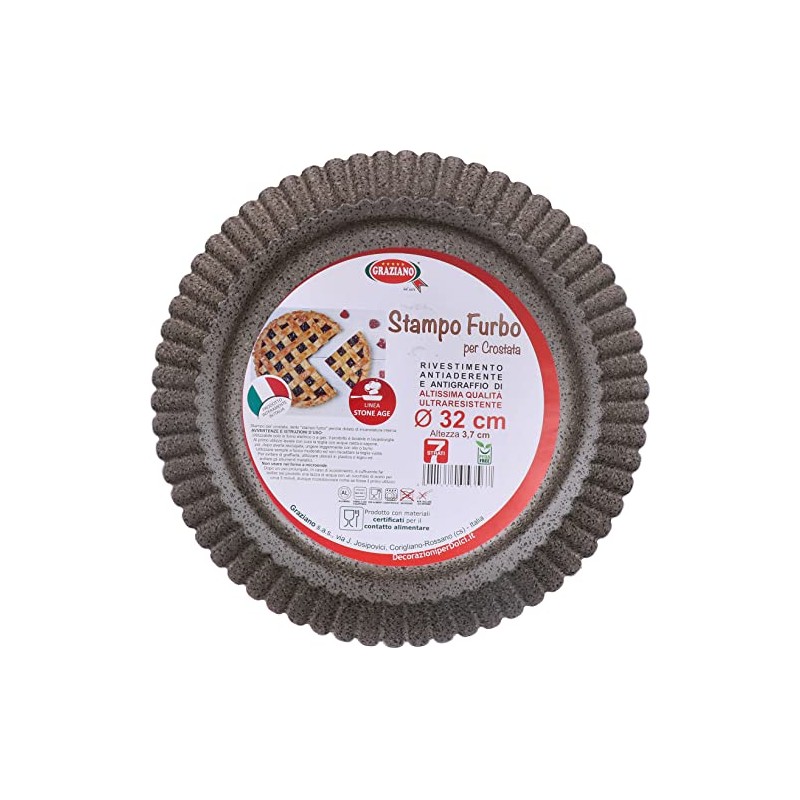 - What you get: At home, you will receive a cake pan made of very durable carbon steel and with 7 layers of black non-stick coating, diameter 32 cm. The excellent heat transfer ensures even browning to the cooking product. All Graziano baking moulds are subject to the highest standards of quality and functionality, using only the best non-stick coatings.