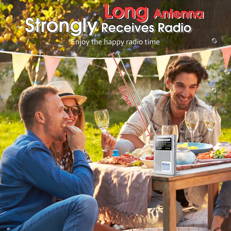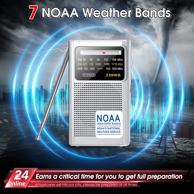 - Life Saver with NOAA Weather Radio:With crystal clear sound and our upgraded DSP chip, this weather radio can professionally receive the best weather broadcasts from seven NOAA radio stations, let you get notified first for every severe weather warning in your area, such as tornadoes, hurricanes and strongly storms.At any critical moment,let you be fully prepared in advance and use this AM FM radio to protect you and your family.Put this portable radio in your home and you always feel safe