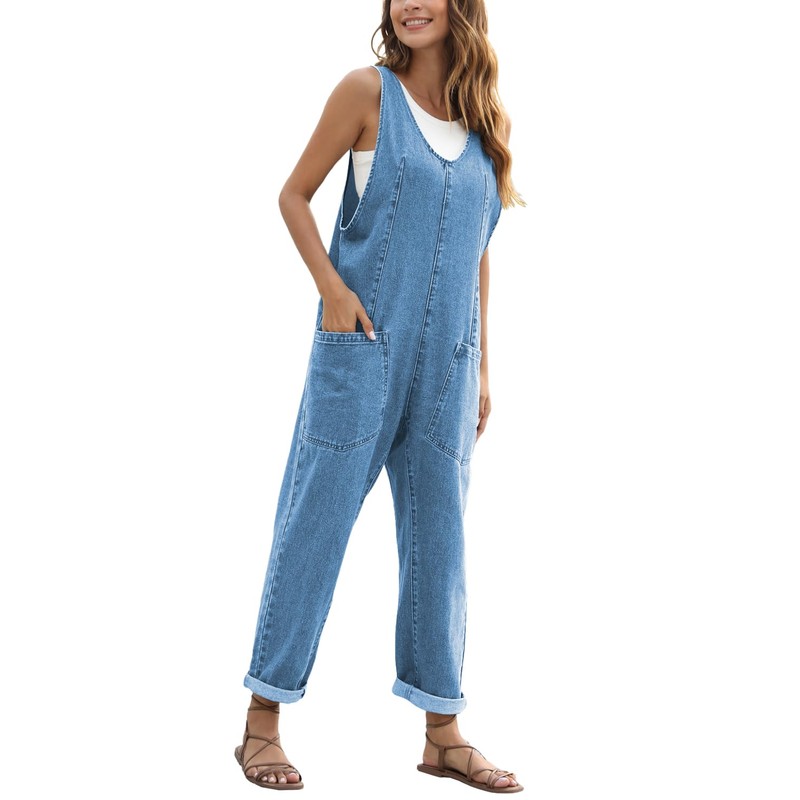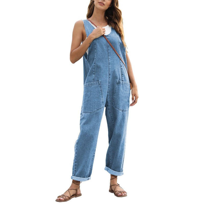 GREAIDEA High Roller Denim Jumpsuits for Women Casual Sleeveless Loose Baggy Overalls Jeans Pants Jumpers with Pockets