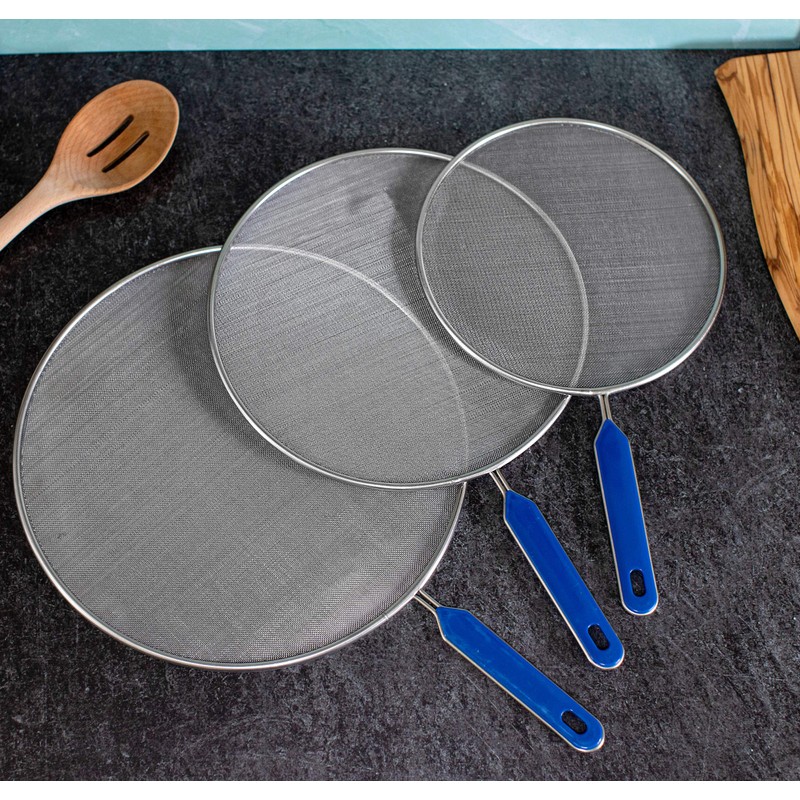 BitimexHome Grease Splatter Screen For Frying Pan Cooking Set of 3 (8", 10" and 11") Fine Mesh Iron Skillet Lid Guard Shield