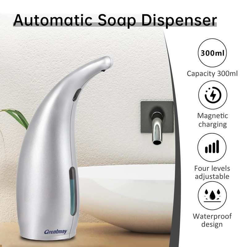 Automatic Soap Dispenser, the perfect addition to your kitchen or bathroom. This touchless dispenser is battery operated, making it convenient and easy to use. Simply place your hand under the sensor and watch as the soap is dispensed without any contact. The dispenser is compatible with a variety of soaps, including dish liquid, foaming soap, hand sanitizer, and more. With its sleek design and durable construction, this dispenser is built to last. Say goodbye to messy countertops and hello to a clean and hygienic space with the Greatmay Automatic Soap Dispenser.
