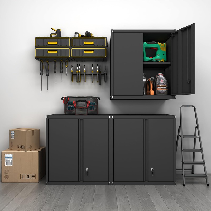 - 【High Quality Wall Cabinet for Garage】This garage wall cabinet is made of thickened alloy steel plate, built to last with strong and durable structure for tools
