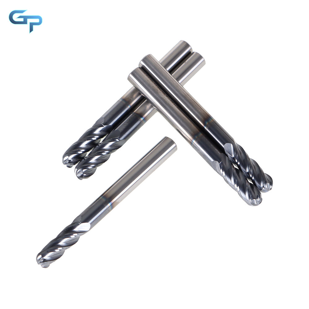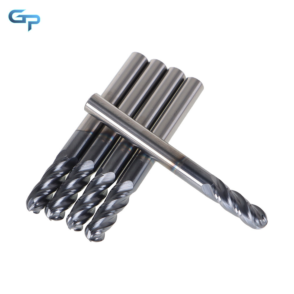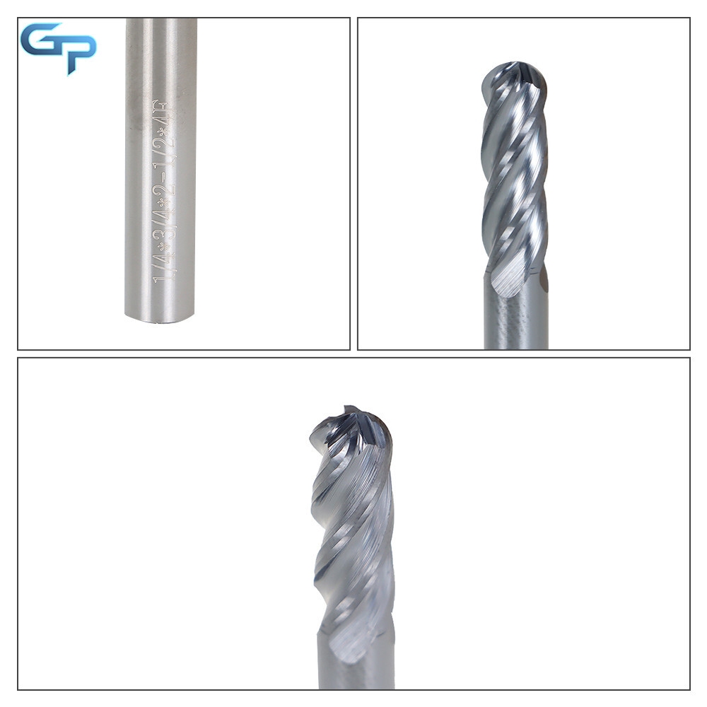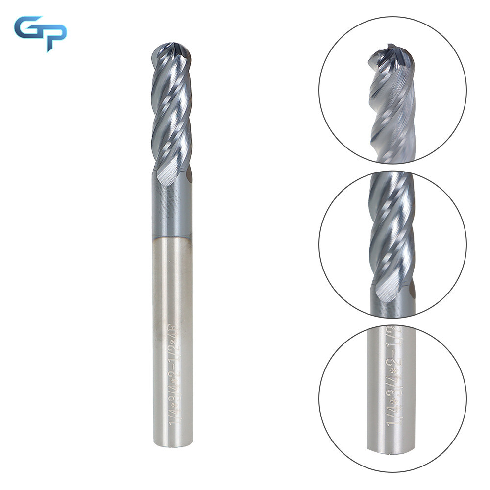greatparts 5 PCS 1/4" 4 Flute Ball Nose Carbide End Mill 2-1/2" Overall Length -TIALN COATE