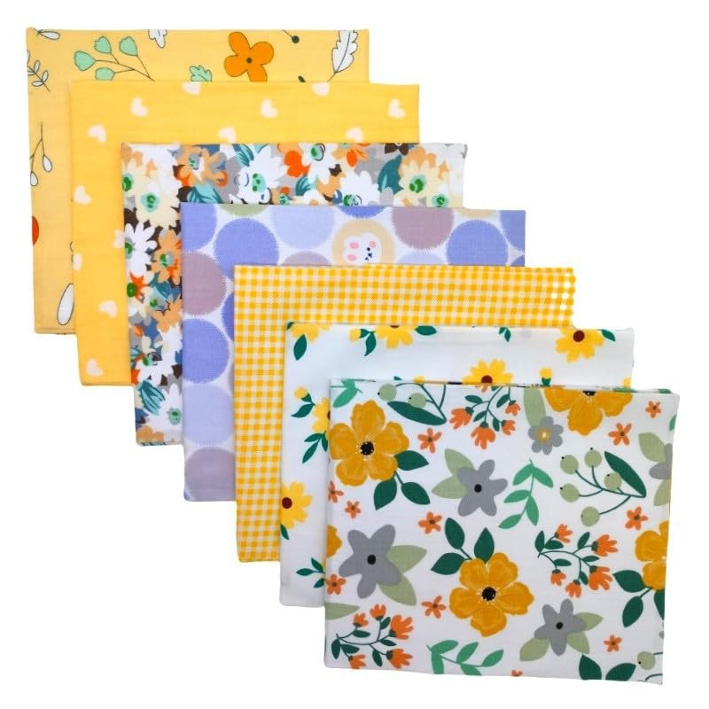 GreatRise 7 Pieces Yellow Series Patchwork Fabrics Package Cotton 50 x 50 cm Cotton Fabrics Fabric Bundle Fabric Bundle Fabric Scraps Sewing Fabrics DIY Crafts Sewing Quilting Fabric Cotton Cloth