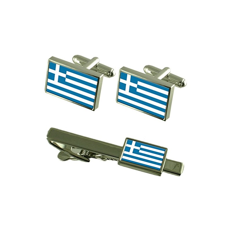 Greece Flag Cufflinks Ties Matching Same Fabric Box Set