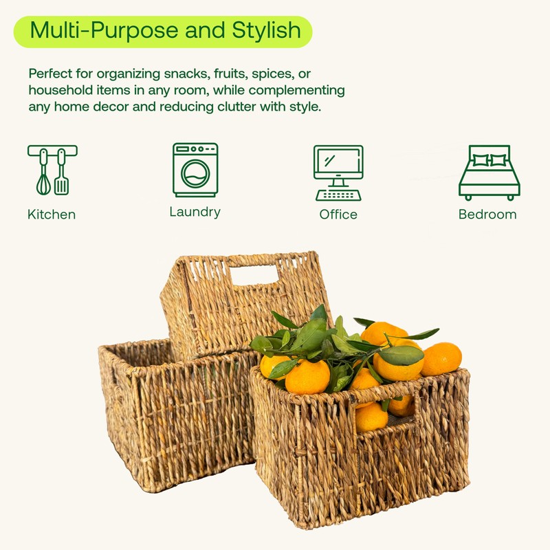 - Versatile Set – Includes one large basket (16" L x 12" W x 7" H) and two small baskets (10" L x 7" W x 7" H) for flexible organization.