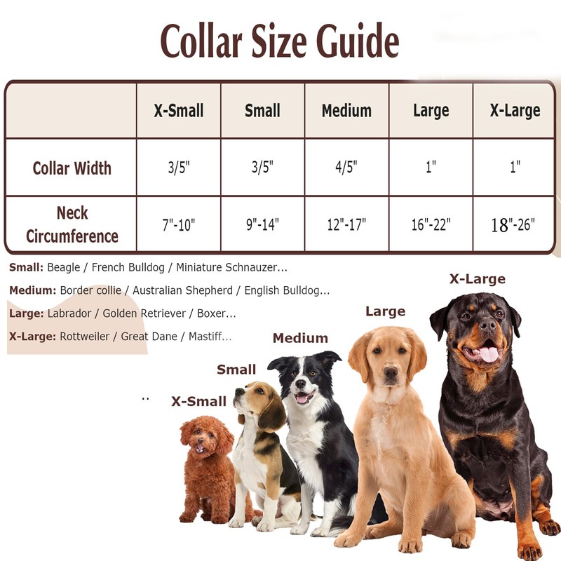 - Choose the Right Size - Please refer to the size chart for specific dimensions. Before placing an order, please use a tape measure to measure and ensure that there is space between the collar and the dog's neck for 2 fingers, which will not be too loose or too tight