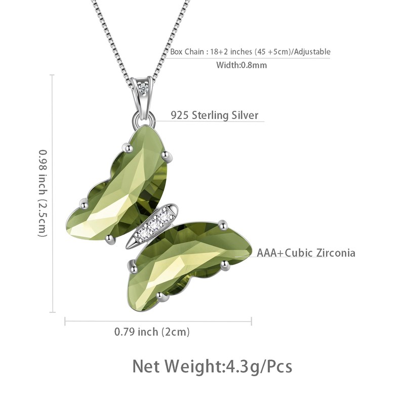 Green Butterfly Heart Necklace Women 925 Sterling Silver Animal Butterflies August Birthstone Pendant Crystal Wedding Birthday Jewelry DP0311A