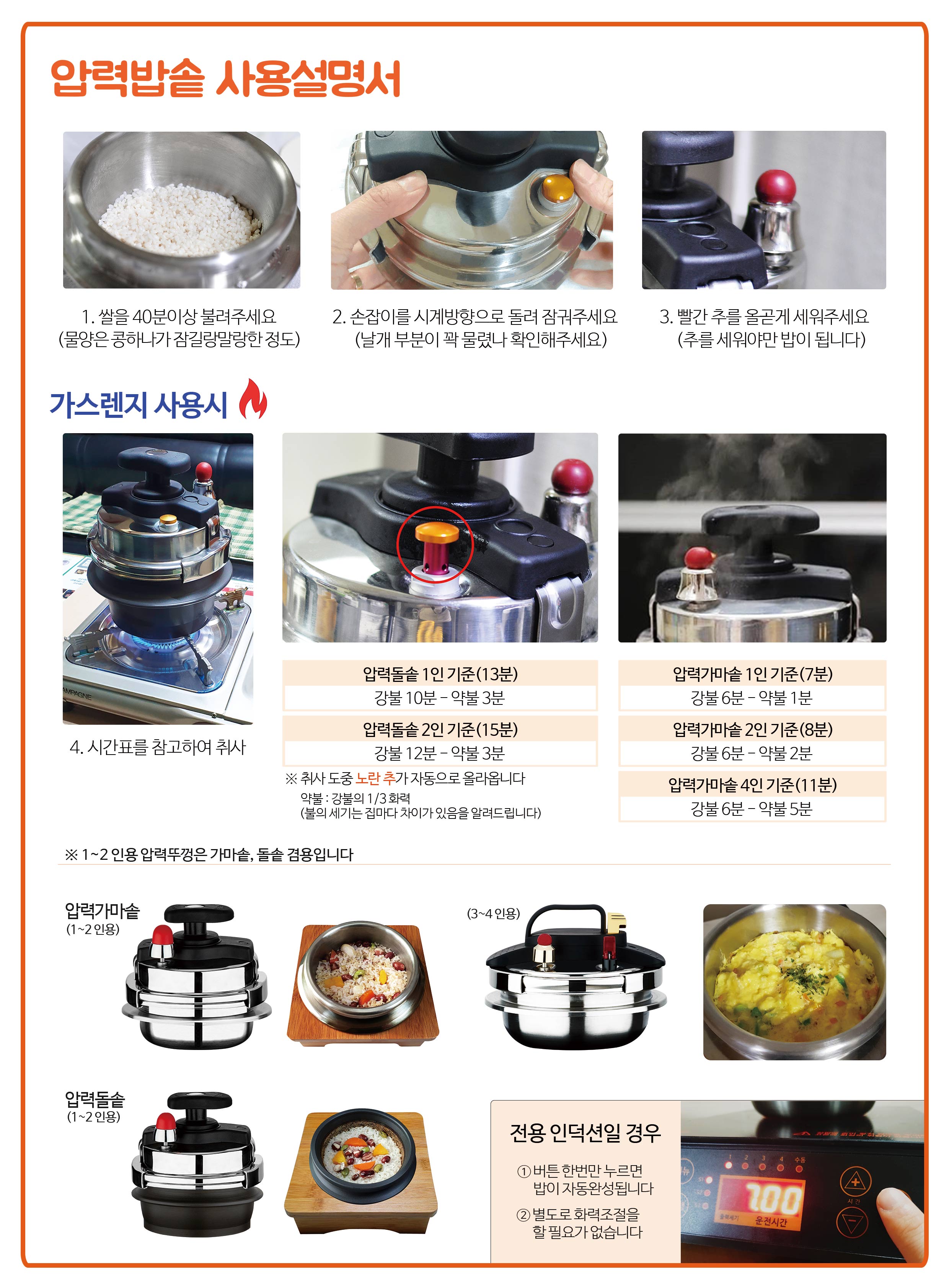 Green Cook & Roaster Nurungji gas and induction pressure cauldron set for 1~2 people (bamboo not included) triple stainless steel / 그린쿡앤로스타 누룽지 가스,인덕션 겸용 압력가마솥세트 1~2인용 (대나무 미포함) 3중스텐