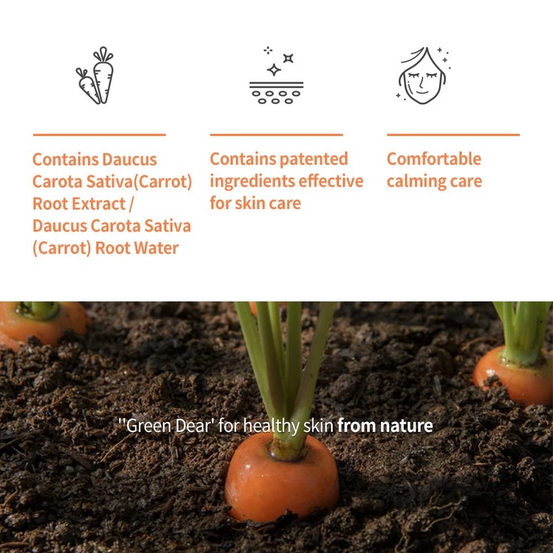 JM Solution Green Dear Carrot Mask Pure is a vitality care sheet mask enriched with carrot extract and patented whitening component that make the skin clear and transparent.
