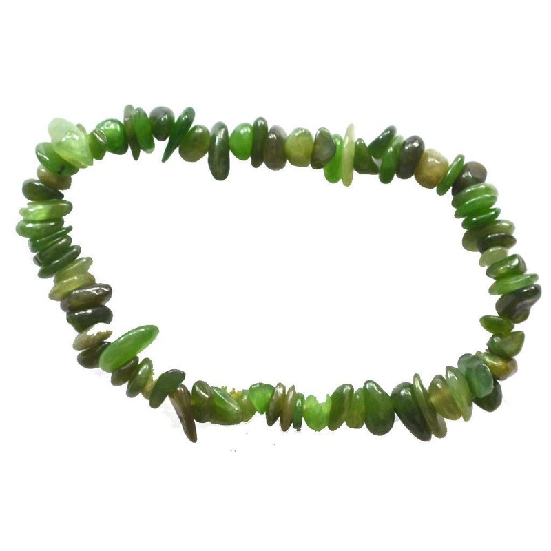 - Adorn your wrist with the beautiful stretchy green jade gemstone bracelet. It consists of small jade tumbled stones in the size of 5-8 mm