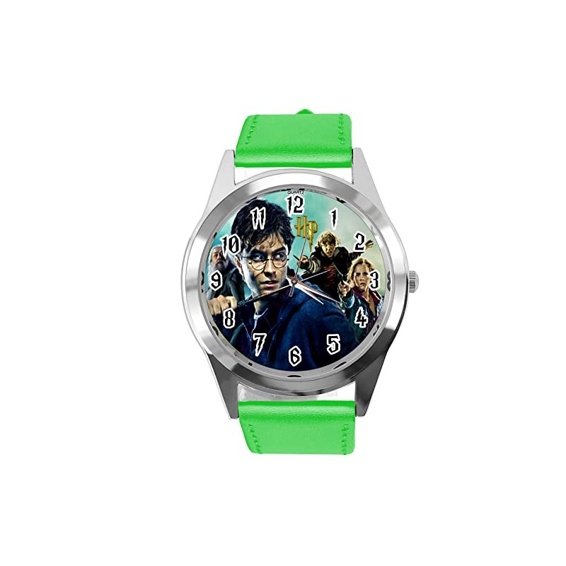 Green Leather Round Quartz Watch for Wizard Fans E3