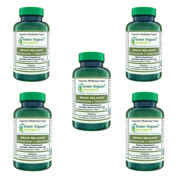 Green Organic Supplements Magnesium L-Threonine 90 VCaps (Pack of 5)