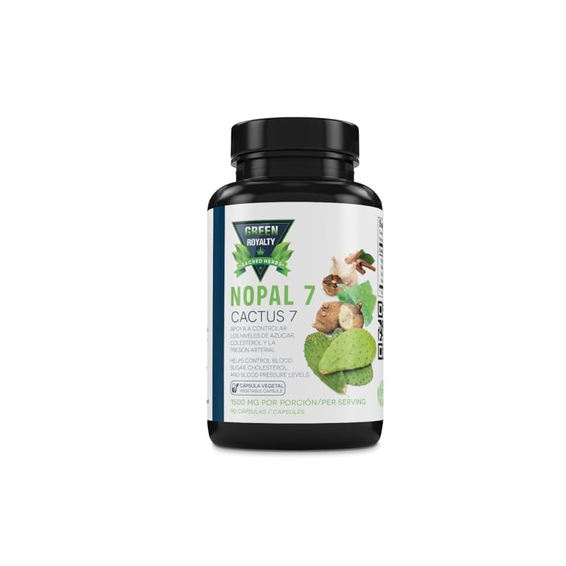 GREEN ROYALTY Nopal 7 Cactus Capsules – Herbal Blend with Aloe Vera, Cinnamon, Black Garlic & More – 1500mg per Serving – 90 Vegetable Capsules – Caffeine-Free, Sugar-Free, Non-GMO